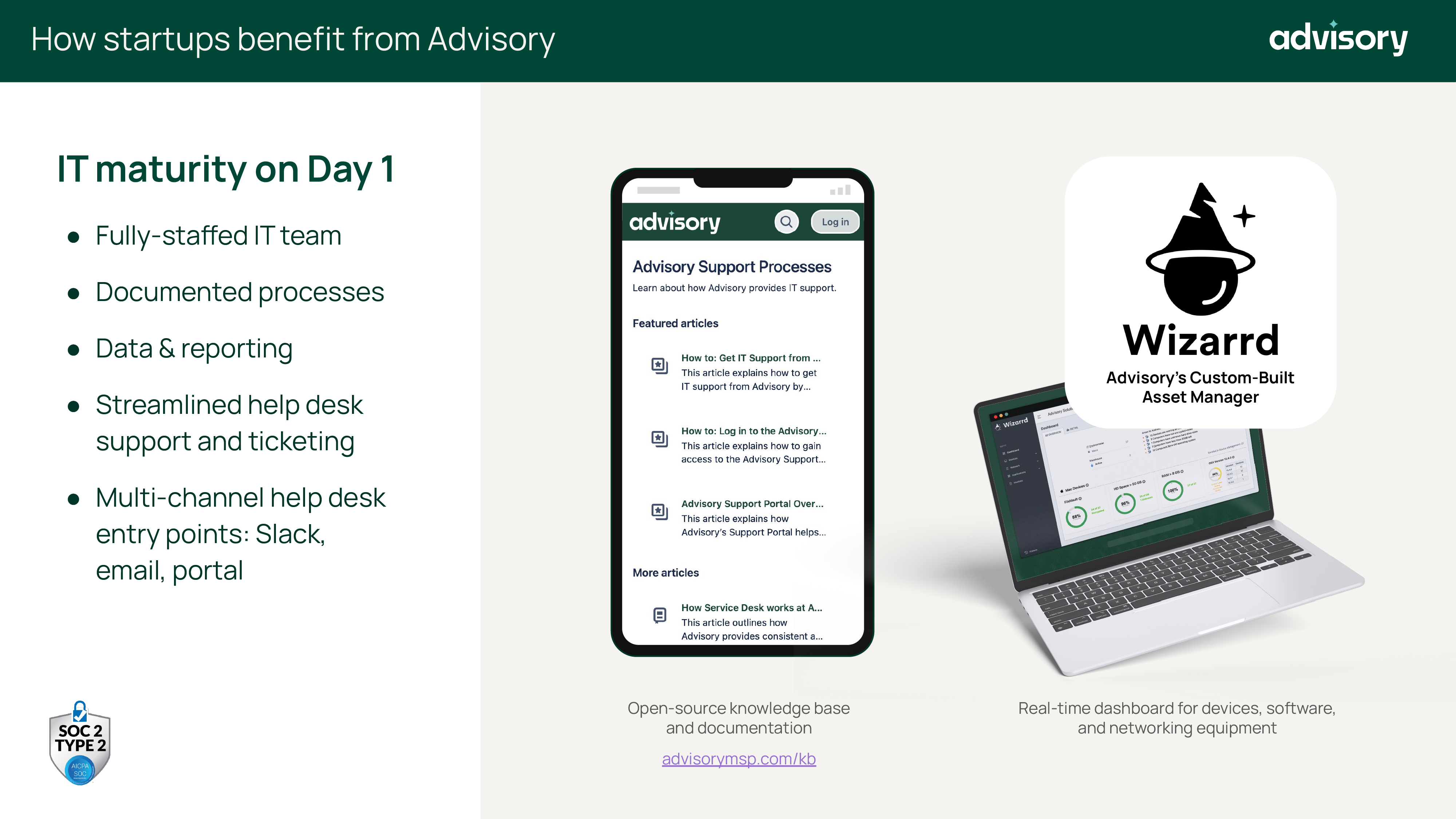 As a growing business, Advisory MSP was ready to start building their brand and marketing to support their internal sales team. Midway through a website redesign process, I was brought on to bring structure and clarity to web content. I've continued working with them on sales decks and collateral.