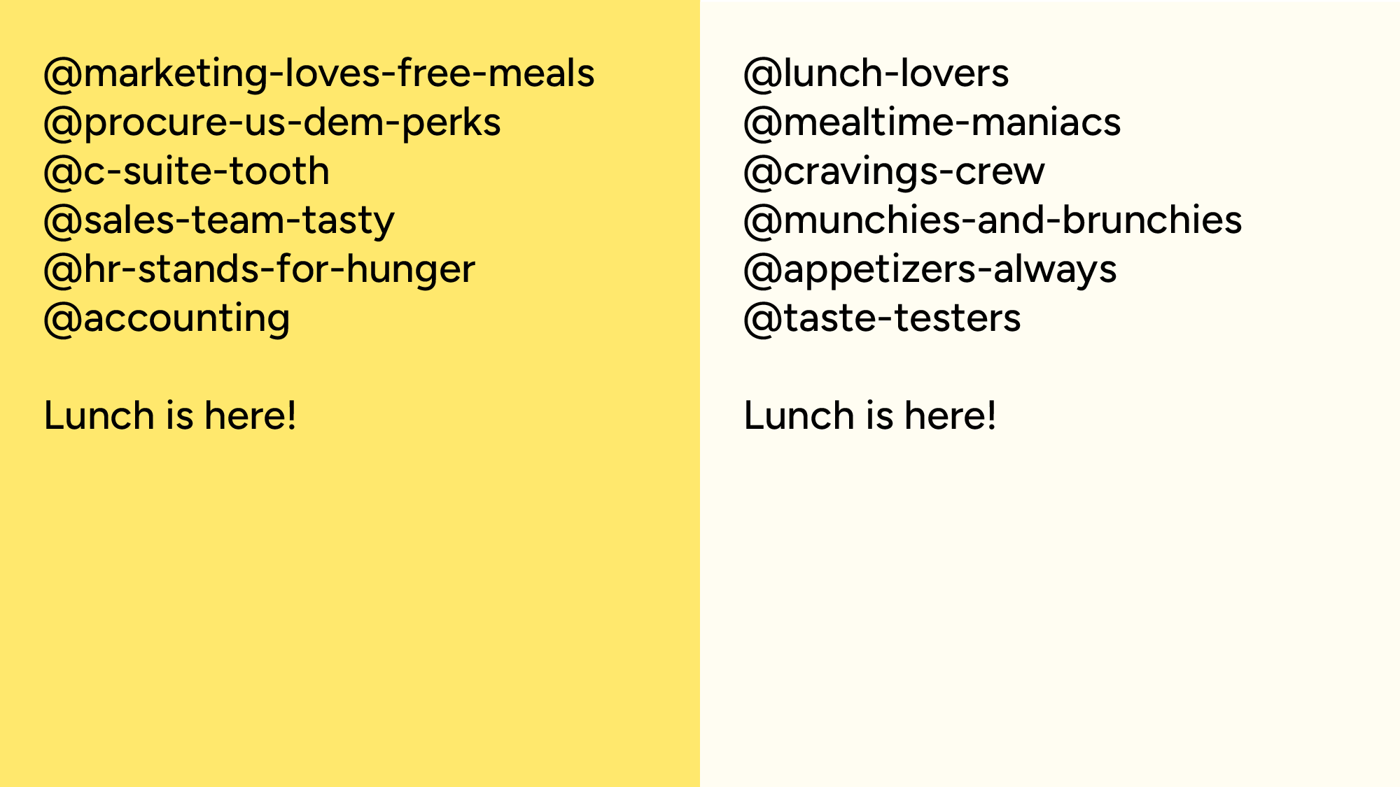 Even in the workplace, digital communities build around food. Across Slack, Teams and Email groups, foodies unite to connect with one another through their unique tastes. This campaign plays with the allegiances and alliances that teams build. Find your @taste-buds.