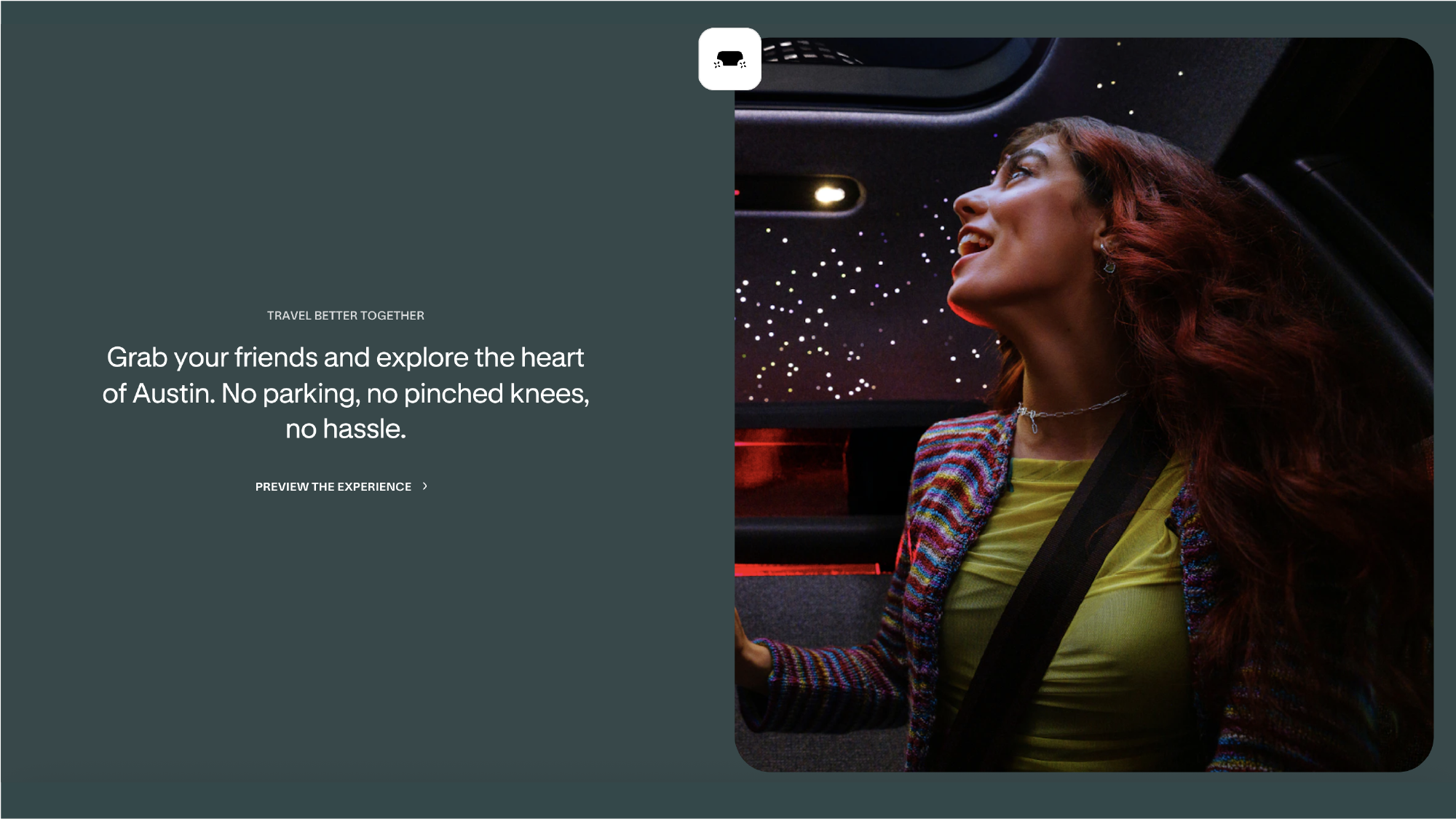 Landing page introducing Zoox to Austin