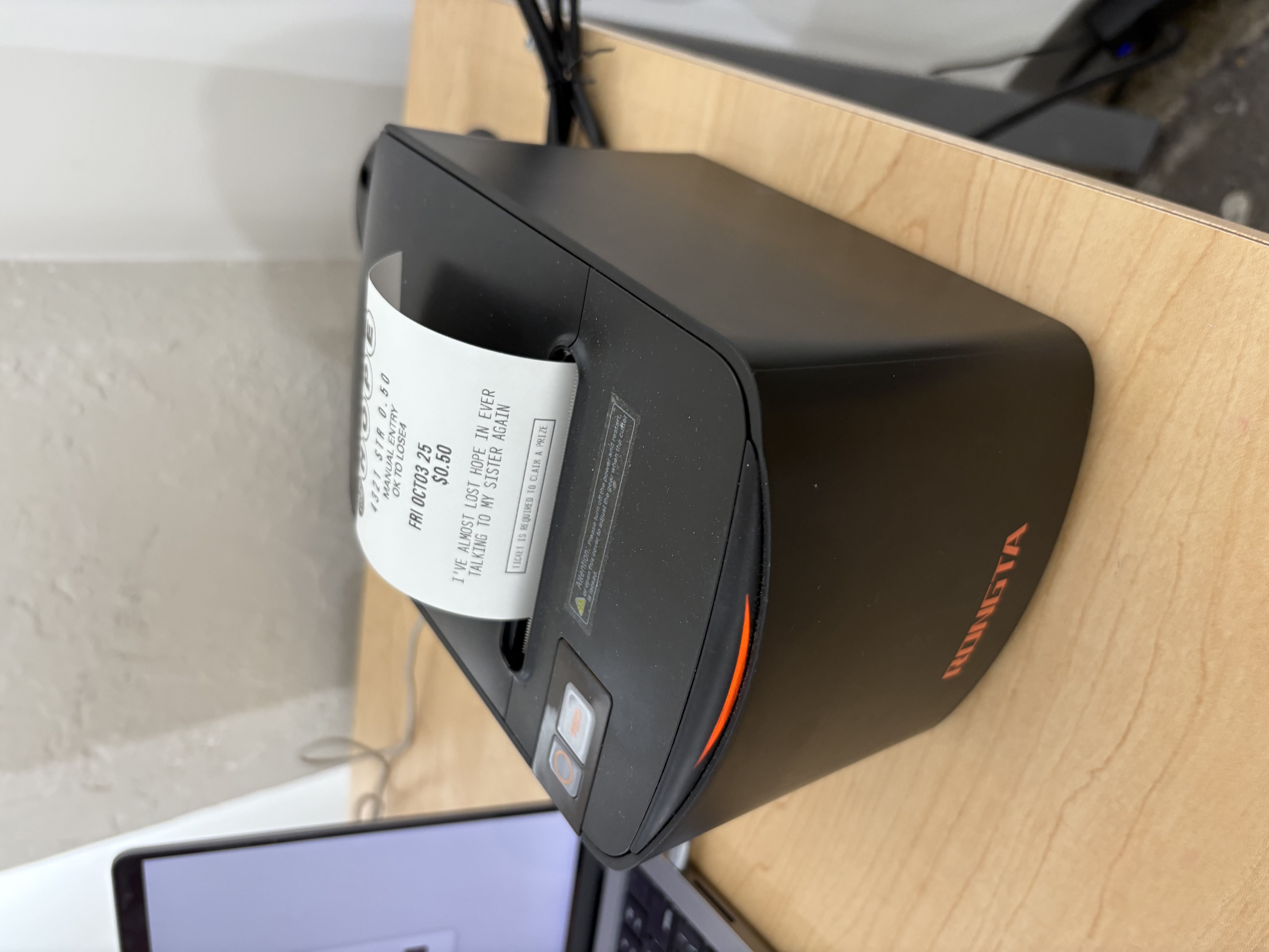Thermal printer creates the ticket