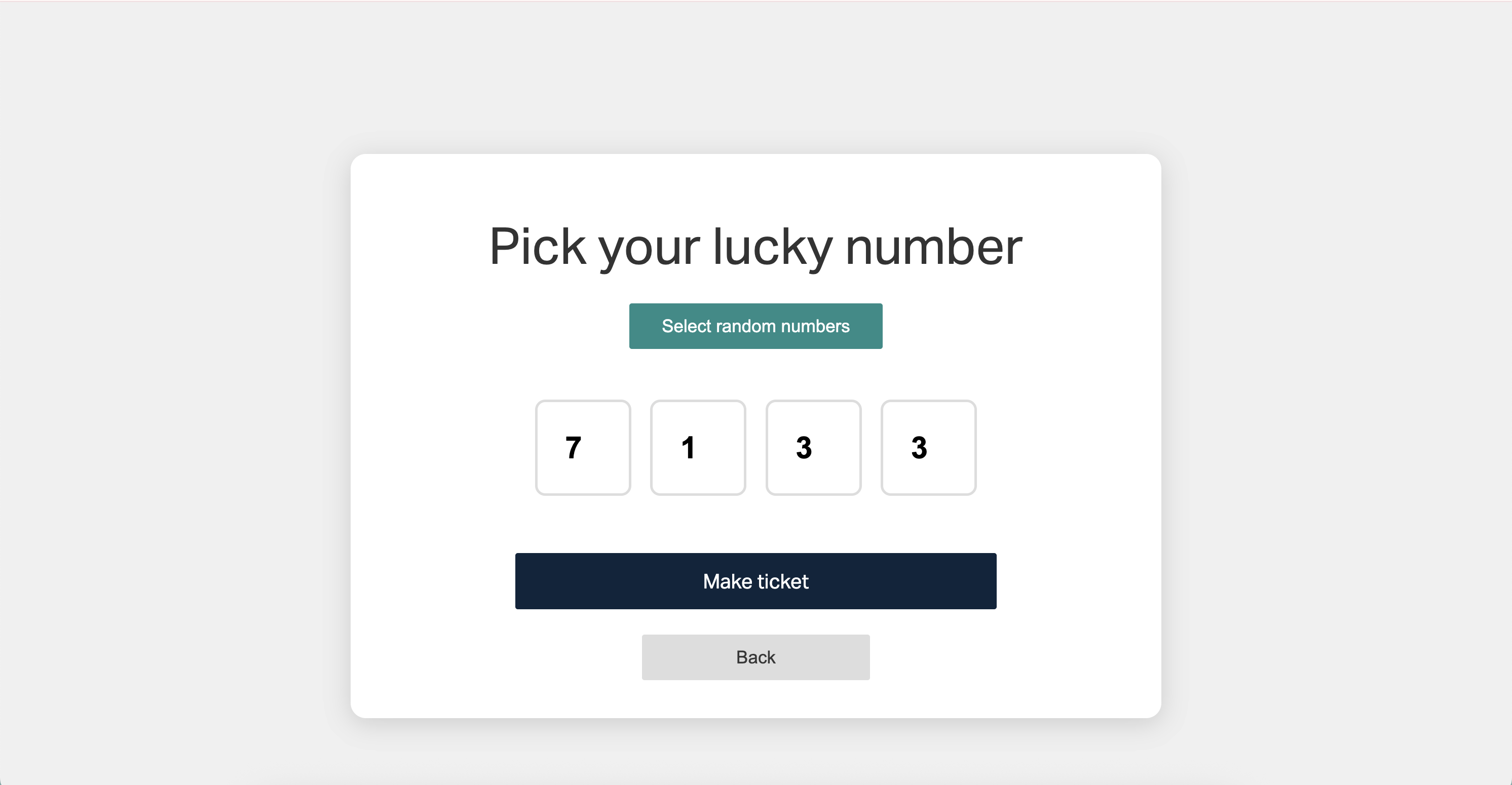 Screen 2 - Pick your lucky number