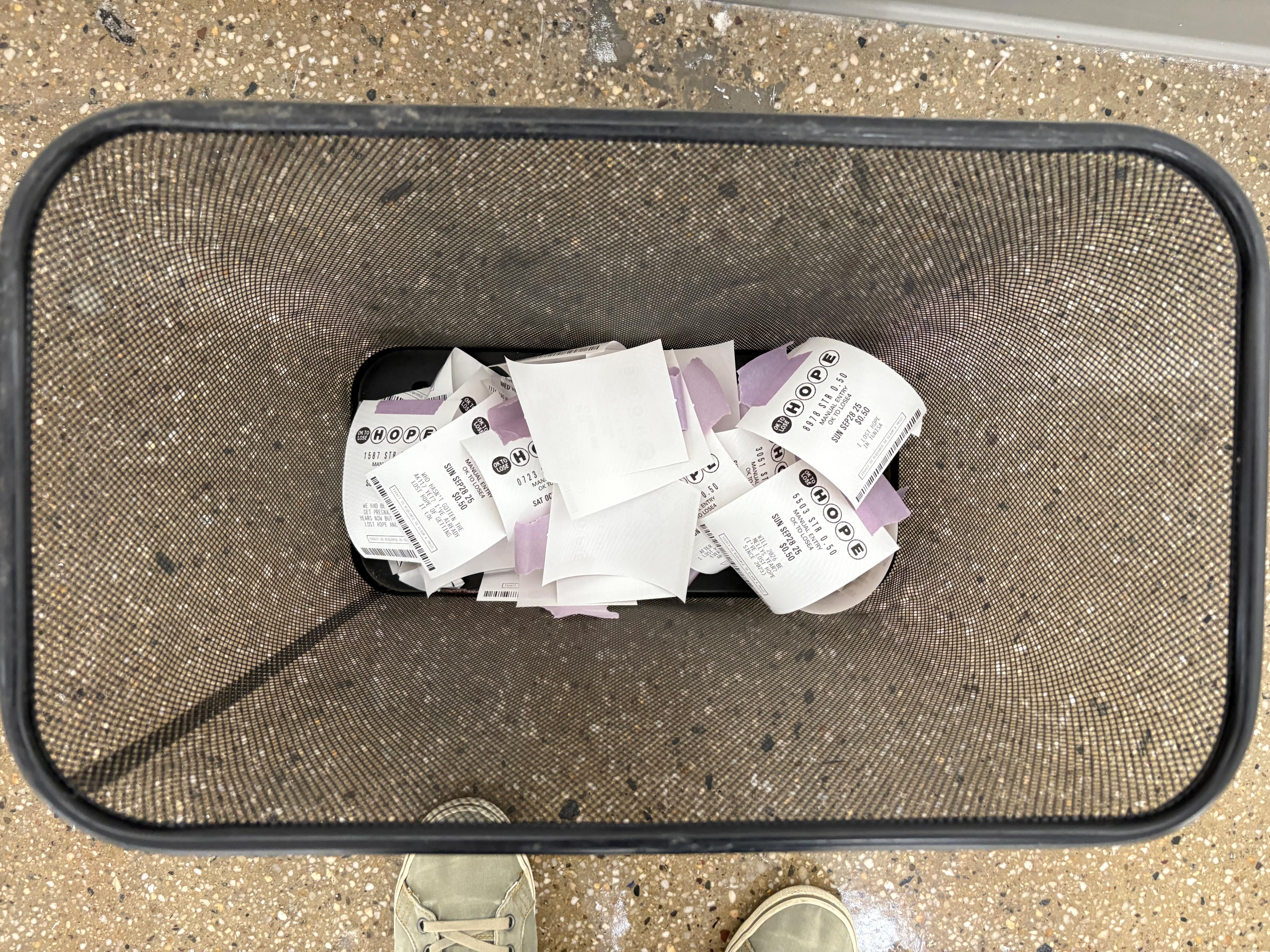 100 lottery tickets, each one with a hope that's been lost