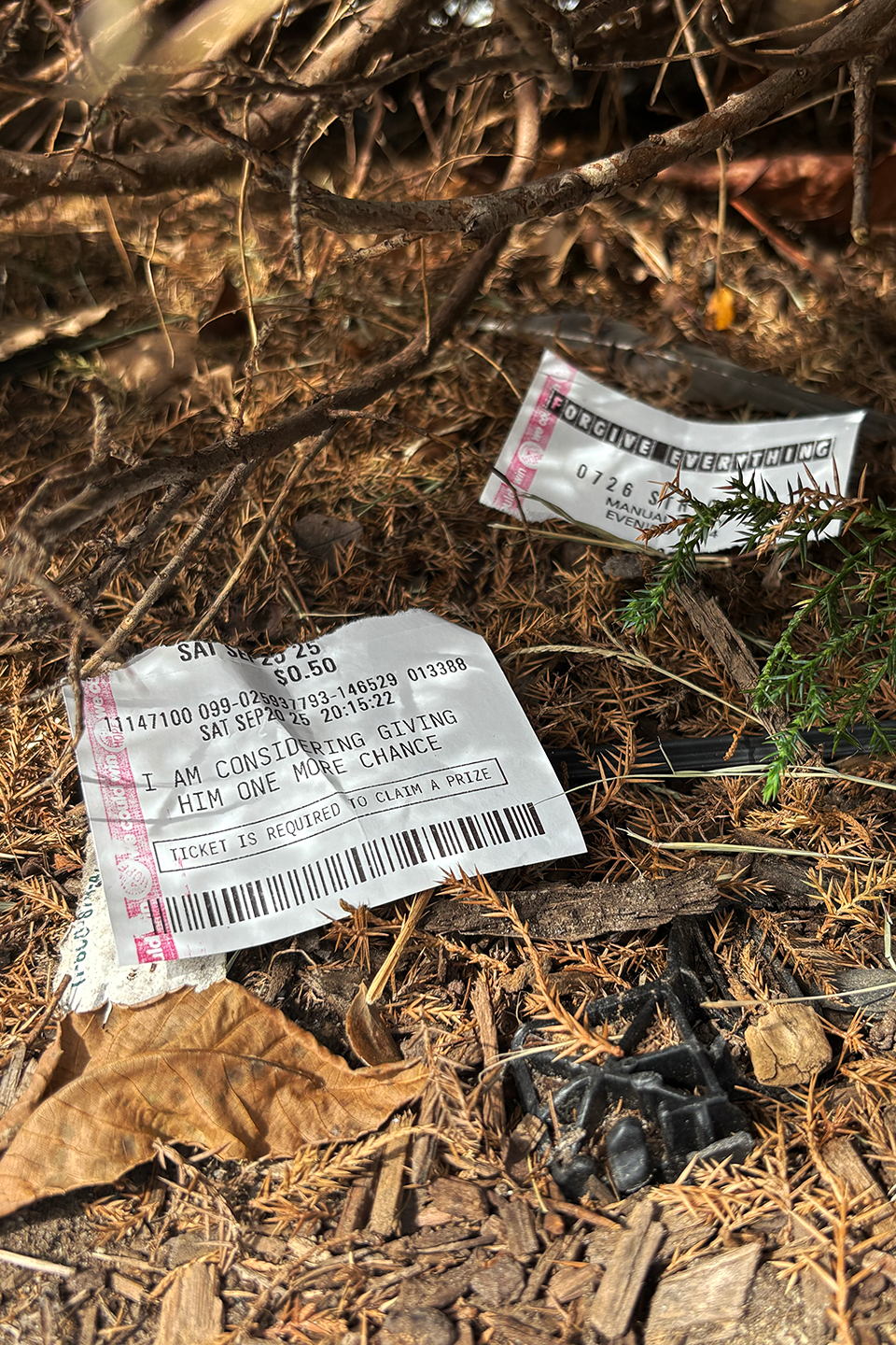 Fake littered lottery tickets